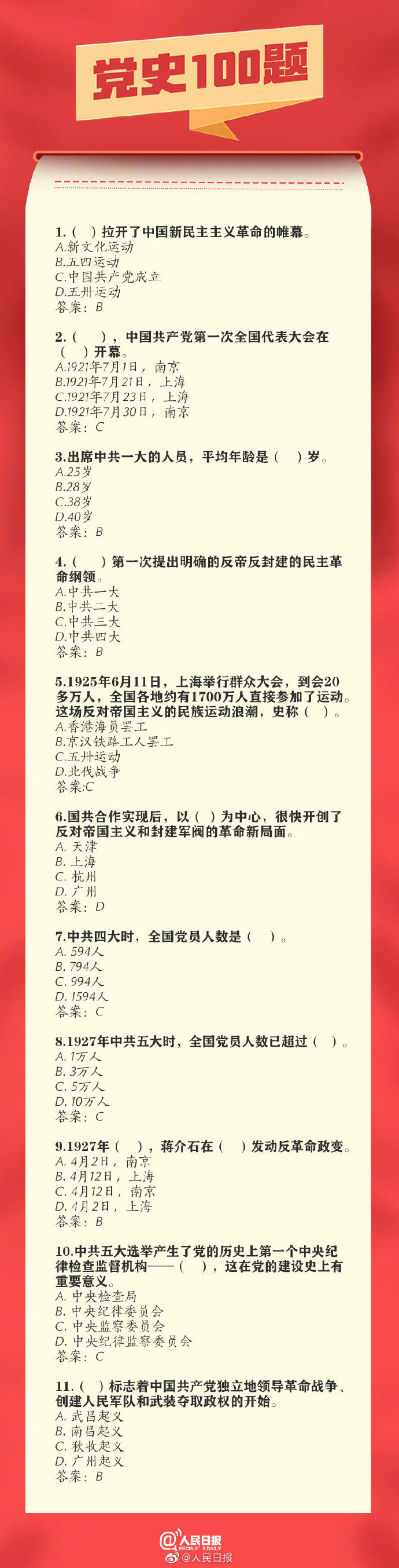 03-16 11:31:00閱讀()人民日報【百年黨史100題,你會做幾道?】你知道出席中共一大的人員平均年齡是多少歲嗎?中共黨員是何時超過1000萬人的?我國的改革開放由哪次會議揭開序幕?……無論我們走得多遠(yuǎn),都不能忘記來時的路。100題重溫百年黨史,戳圖學(xué)習(xí)↓↓中國共產(chǎn)黨100周年,收藏!