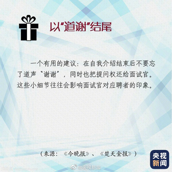 08-19 15:57:52閱讀()央視新聞求職面試時(shí)的自我介紹有“四大注意”: