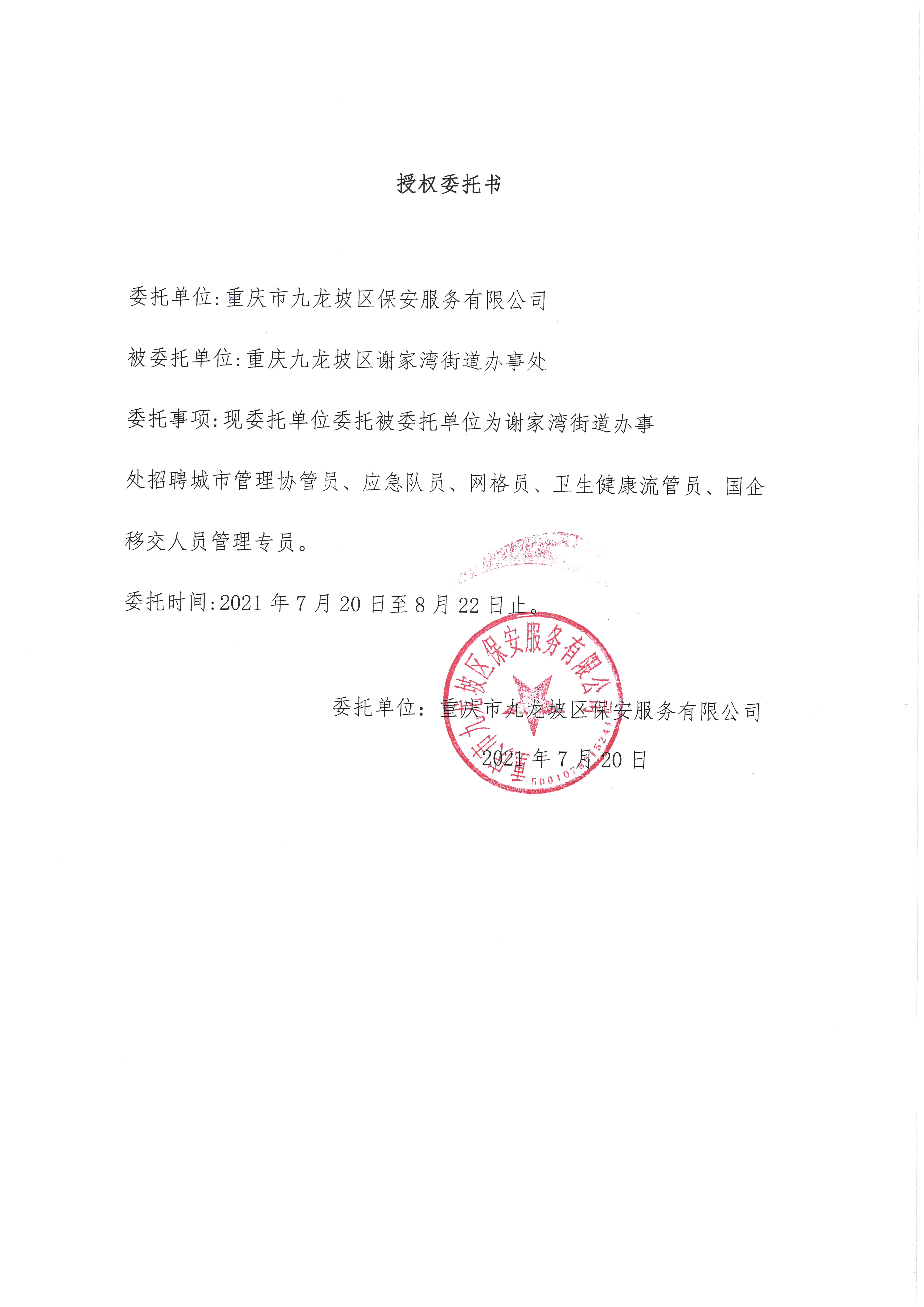 2022-04-01 13:09:00閱讀()重慶市九龍坡區(qū)人民政府為適應(yīng)新形勢下街道工作需要,建成一支政治素質(zhì)高、業(yè)務(wù)能力強(qiáng)、服務(wù)水平優(yōu)的工作人員隊伍,根據(jù)街道實際,受重慶市九龍坡區(qū)保安服務(wù)有限公司委托,面向社會公開招聘城市管理協(xié)管員、退役軍人專職工作者、群團(tuán)工作者、網(wǎng)格員、衛(wèi)生健康流管員、應(yīng)急隊員。