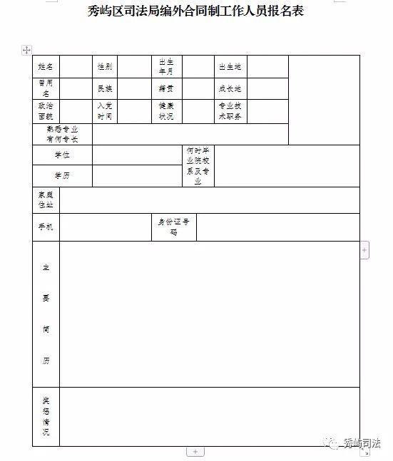 附件:秀嶼區(qū)司法局編外合同制工作人員報(bào)名表
