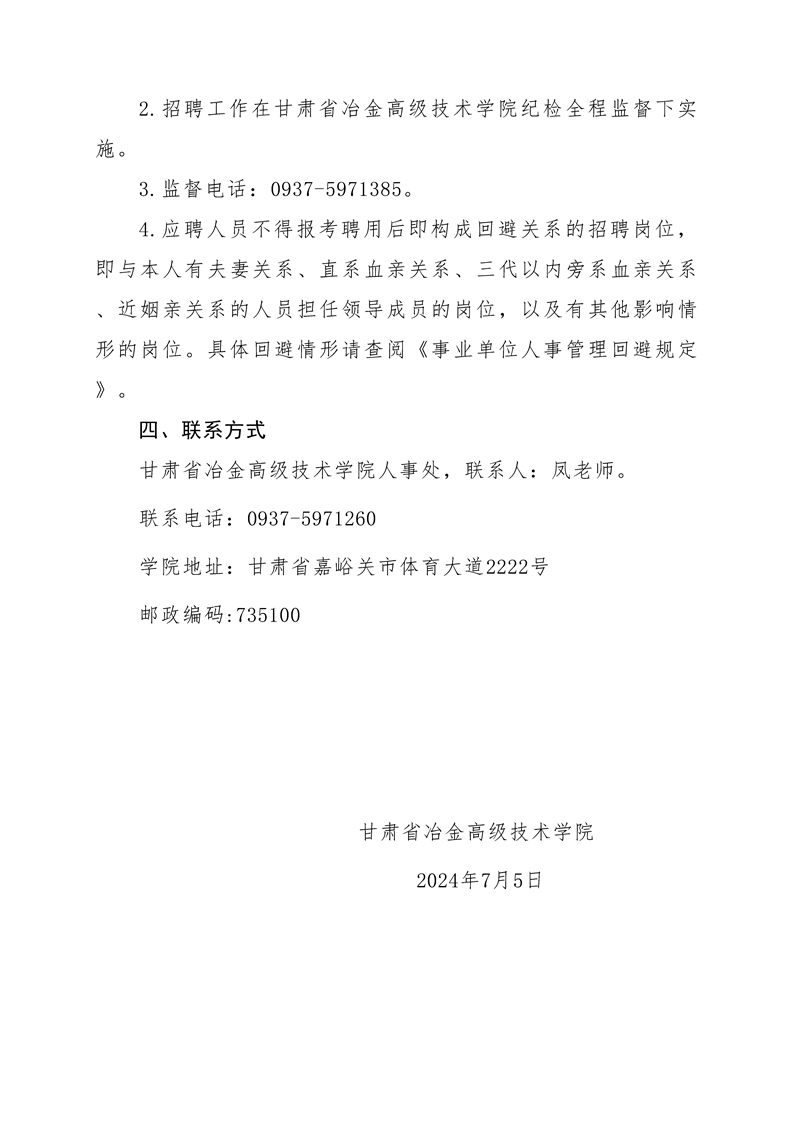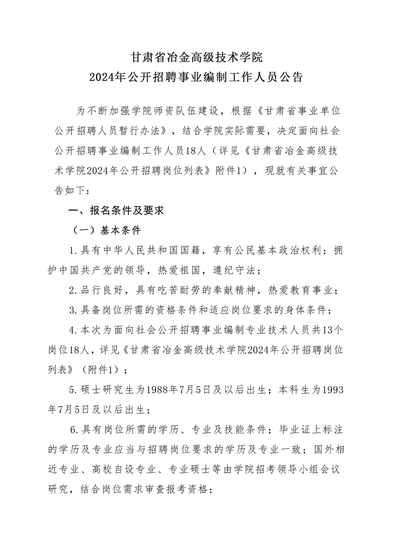 2024年甘肅省冶金高級(jí)技術(shù)學(xué)院公開招聘事業(yè)編制工作人員公告