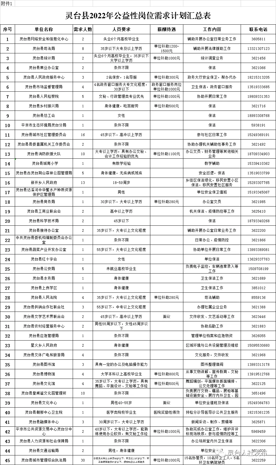 附件:1.靈臺(tái)縣2022年公益性崗位需求計(jì)劃匯總表