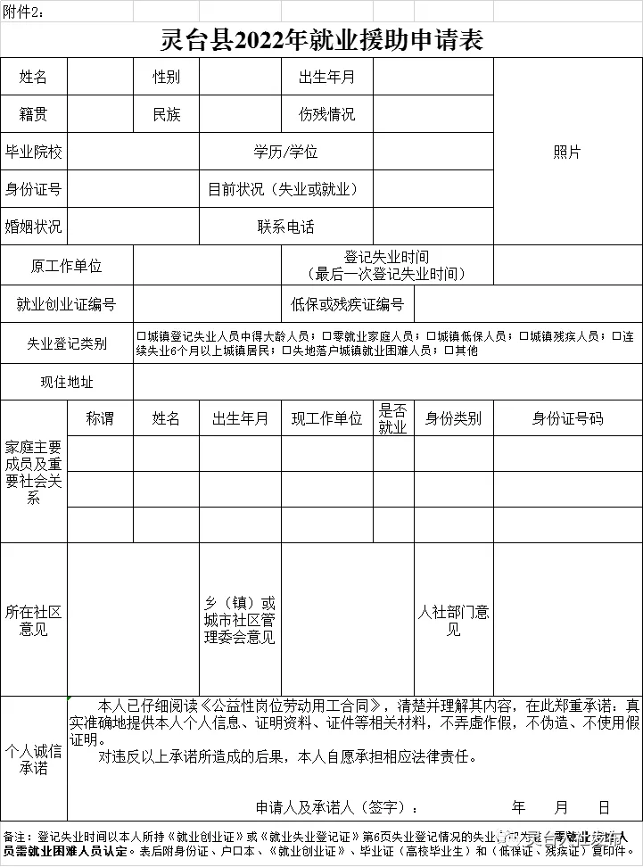 2.靈臺(tái)縣2022年就業(yè)援助申請表