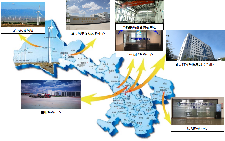 甘肅省特檢院已形成“一總部兩國家質(zhì)檢中心三外設(shè)地區(qū)性檢驗(yàn)中心”發(fā)展布局。本部位于蘭州市七里河區(qū)彭家坪,建有綜合檢測實(shí)驗(yàn)大樓,內(nèi)設(shè)15個(gè)檢驗(yàn)業(yè)務(wù)中心和7個(gè)職能管理部門,擁有“國家風(fēng)電設(shè)備質(zhì)量監(jiān)督檢驗(yàn)中心”、“國家節(jié)能換熱設(shè)備質(zhì)量監(jiān)督檢驗(yàn)中心”兩個(gè)國家質(zhì)檢中心,同時(shí)在蘭州新區(qū)、白銀、慶陽、酒泉等地設(shè)有檢驗(yàn)分中心。