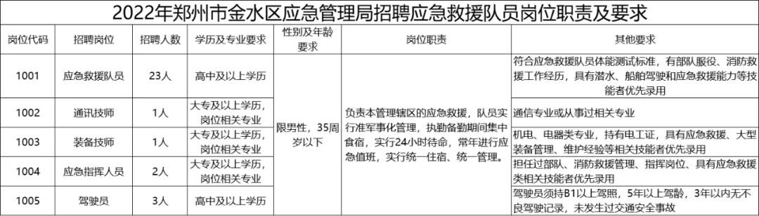 2022-04-05 23:47:12閱讀()鄭州公共招聘網(wǎng)為切實(shí)加強(qiáng)應(yīng)急管理隊(duì)伍建設(shè),解決應(yīng)急管理專(zhuān)業(yè)人才短缺問(wèn)題,受鄭州市金水區(qū)應(yīng)急管理局委托,現(xiàn)面向社會(huì)公開(kāi)招聘應(yīng)急救援隊(duì)員。具體公告如下: