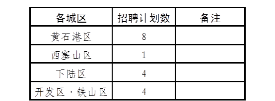 此次專項(xiàng)招聘擬面向黃石港區(qū)、西塞山區(qū)、下陸區(qū)、開發(fā)區(qū)·鐵山區(qū)所轄街道范圍內(nèi)的在崗城市社區(qū)黨組織書記公開招聘17名事業(yè)編制人員。具體情況如下: