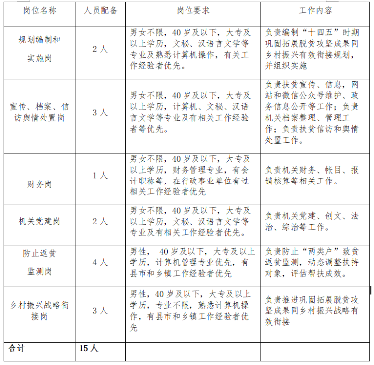 2021-02-01 22:33:25閱讀()襄陽(yáng)市人力資源和社會(huì)保障局襄陽(yáng)市人民政府扶貧開發(fā)辦公室現(xiàn)委托湖北為盛人力資源開發(fā)有限公司面向社會(huì)公開招聘相關(guān)崗位工作人員15名(崗位要求和工作內(nèi)容附后),現(xiàn)將具體事項(xiàng)公告如下: