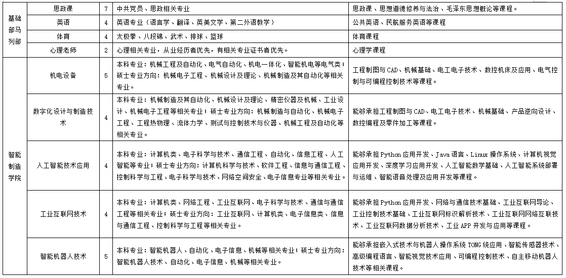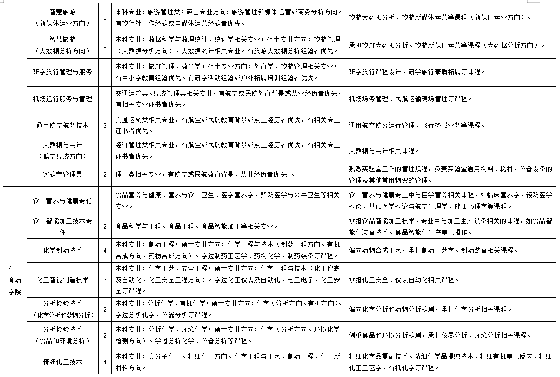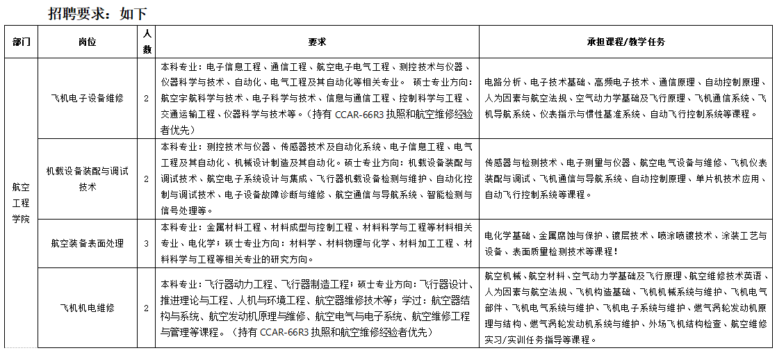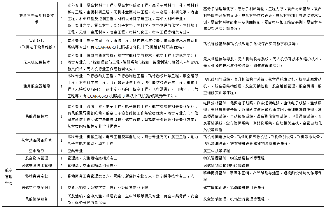1.英語(yǔ)、體育、空乘專(zhuān)業(yè)教師,以及實(shí)訓(xùn)教師、實(shí)驗(yàn)管理員需本科及以上學(xué)歷,且具備 3 年以上高校教學(xué)經(jīng)驗(yàn)或相關(guān)工作經(jīng)驗(yàn)。