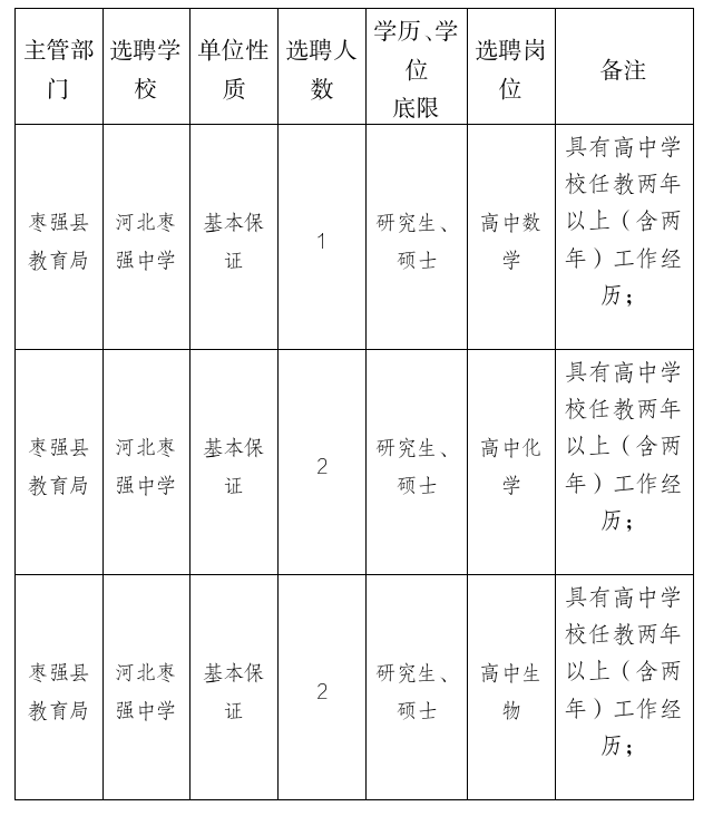 為棗強中學選聘碩士研究生及以上學歷5人。