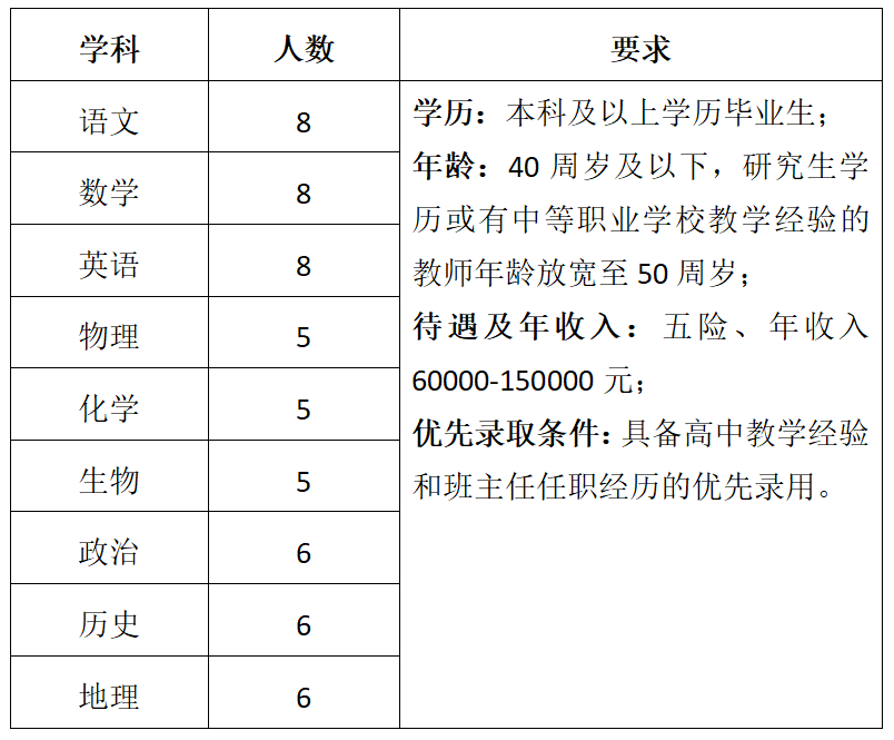 本次擬招聘學(xué)科教師57名,具體崗位和要求詳見(jiàn)下表