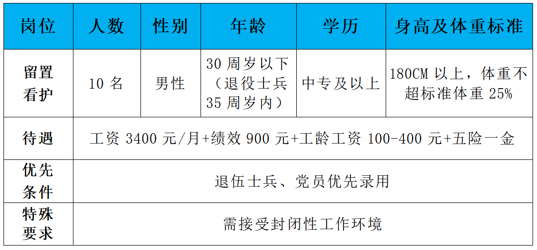 5、身心健康,體貌端正,無殘疾、無口吃、無重聽、無紋身、無色盲、無傳染性疾病,裸眼視力在4.8以上,直系親屬及本人無精神疾病病史,具有正常履行工作職責的身體條件;