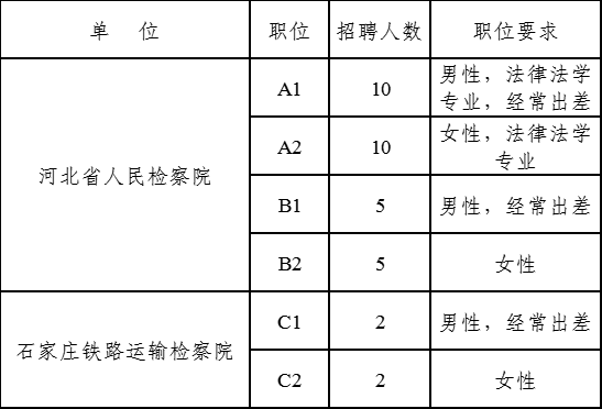 根據(jù)聘用制書記員職數(shù)核定情況,結(jié)合聘用制書記員隊(duì)伍梯次建設(shè)實(shí)際,河北省人民檢察院、石家莊鐵路運(yùn)輸檢察院2023年度計(jì)劃招聘聘用制書記員34名,其中省院機(jī)關(guān)30名,石家莊鐵路運(yùn)輸檢察院4名。具體職位如下: