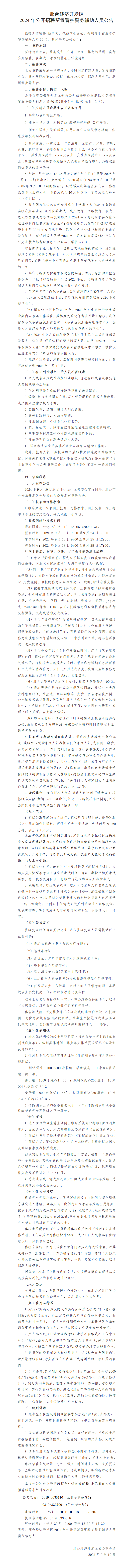2024年邢臺(tái)經(jīng)濟(jì)開發(fā)區(qū)公開招聘留置看護(hù)警務(wù)輔助人員公告