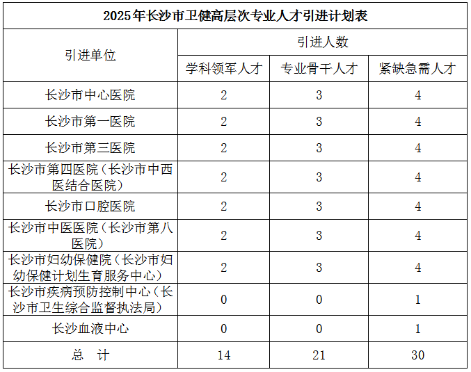 附件:2025年長(zhǎng)沙市衛(wèi)生健康高層次專(zhuān)業(yè)人才引進(jìn)崗位表