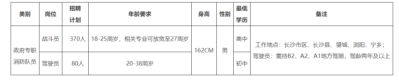 12、聘用人員與長沙市消防救援支隊簽訂勞動合同,其工資福利待遇按《關于長沙市政府專職消防員工資福利待遇的意見》(長人社發(fā)〔2020〕32號文件)執(zhí)行,社保按照企業(yè)社會保險政策繳納,住房公積金按長沙市住房公積金管理相關政策繳納。