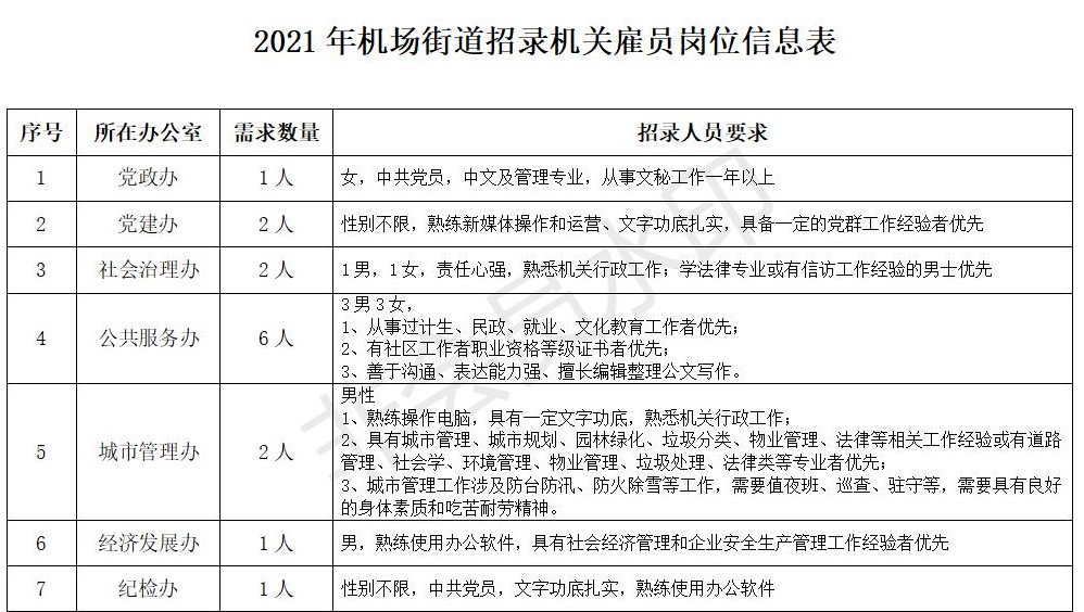 附:《2021年機場街道招錄機關(guān)雇員崗位信息表》
