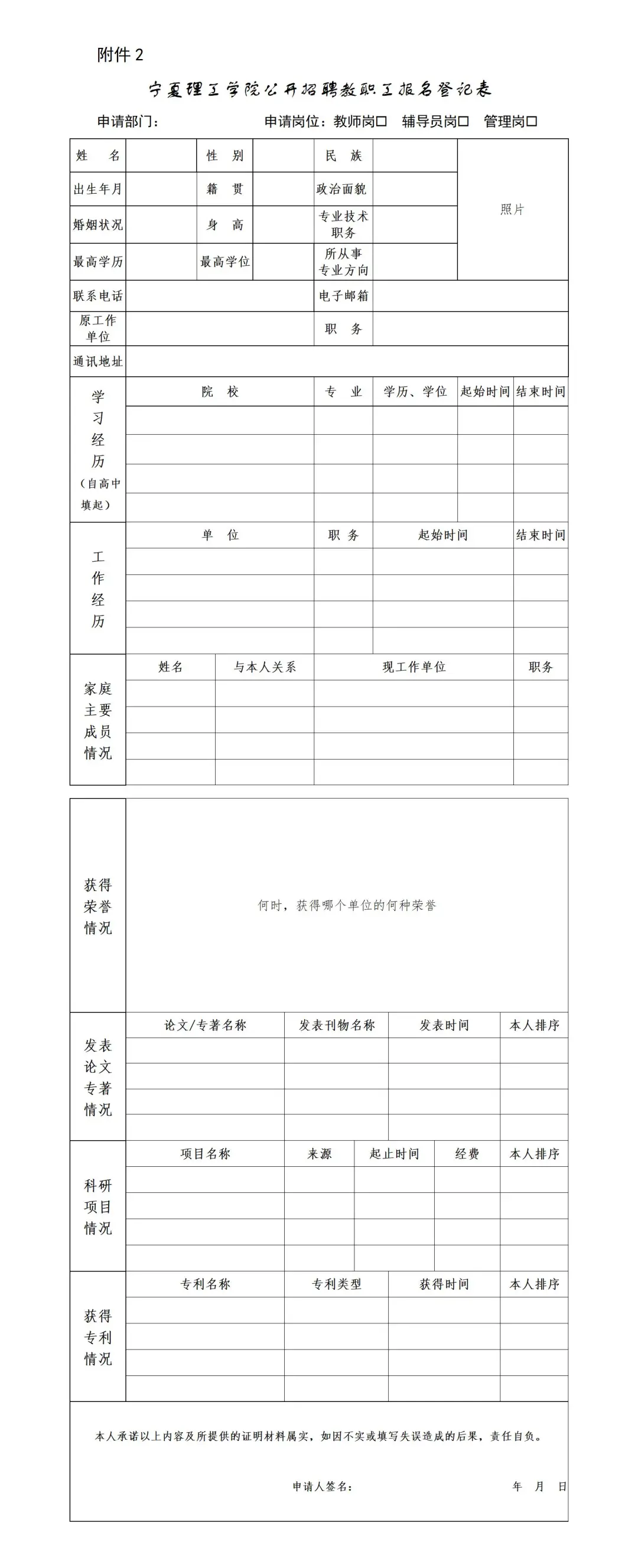 2.《寧夏理工學(xué)院公開招聘教職工報(bào)名登記表》