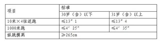 2.體能測評內(nèi)容:參照《公安機關錄用人民警察體能測評實施規(guī)則》組織實施,具體內(nèi)容為10米×4往返跑(測評次數(shù)不超過2次)、男子1000米跑(測評次數(shù)為1次)、縱跳摸高(測評次數(shù)不超過3次)。