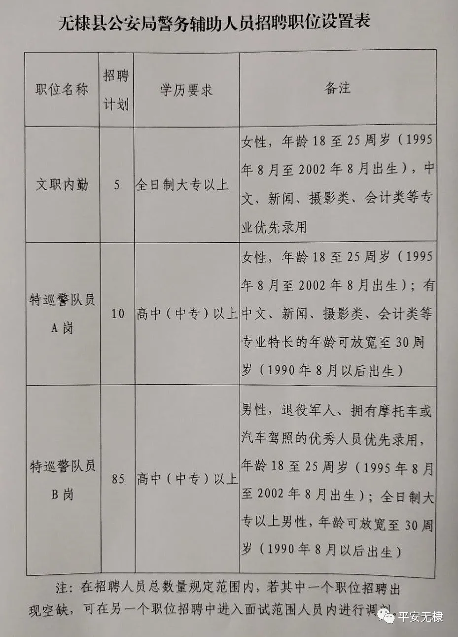 招聘職位詳見《無棣縣公安局警務(wù)輔助人員招聘職位設(shè)置表》(附件1)。