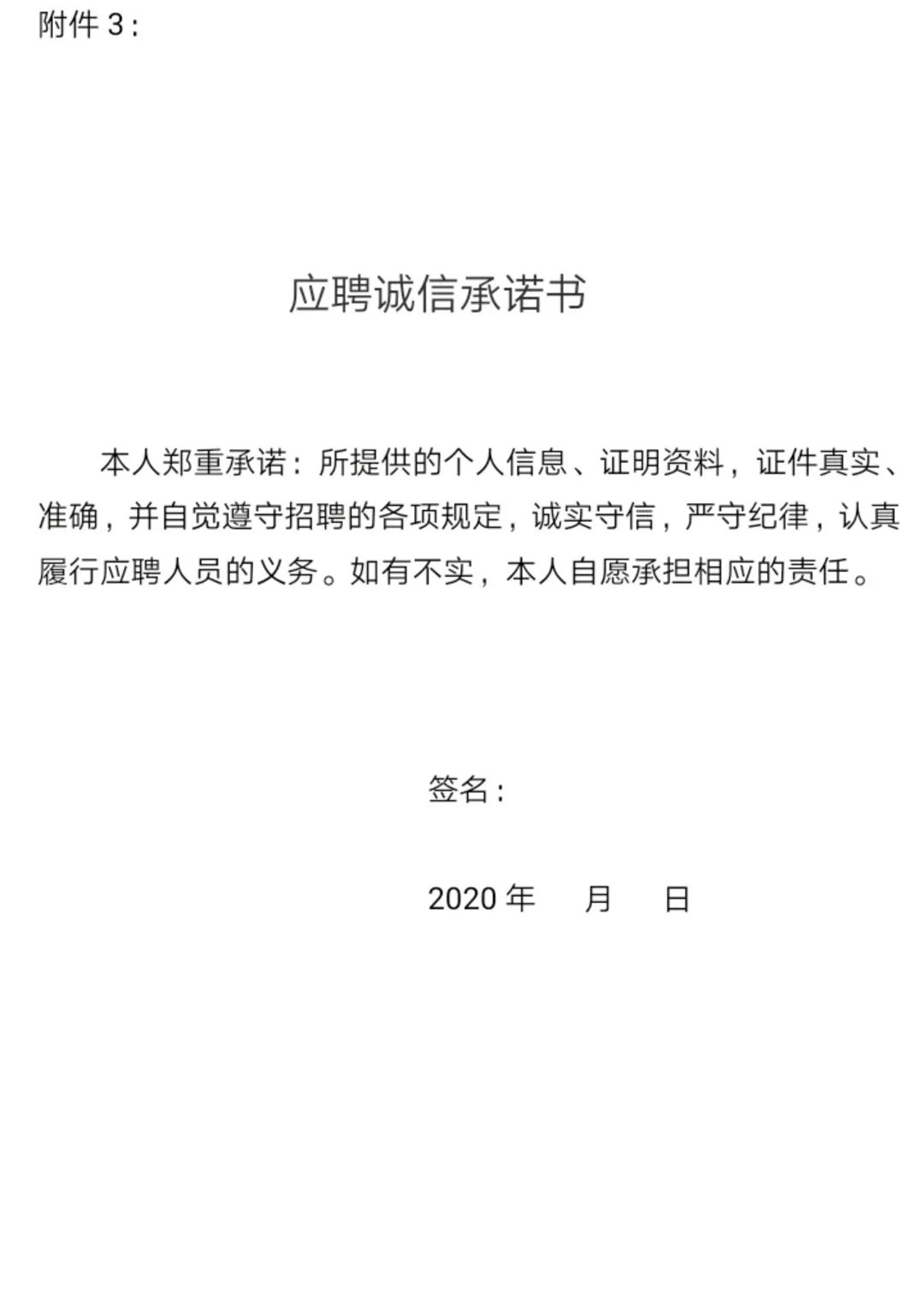 3、《應(yīng)聘承諾書》