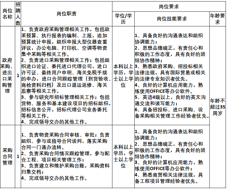 現(xiàn)因工作需要,對所內(nèi)招聘管理崗位2名。