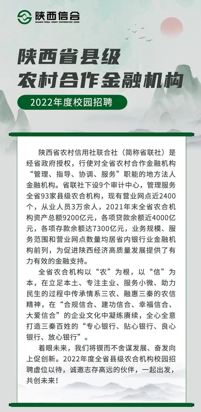 2022年陜西省縣級(jí)農(nóng)村合作金融機(jī)構(gòu)校園招聘公告