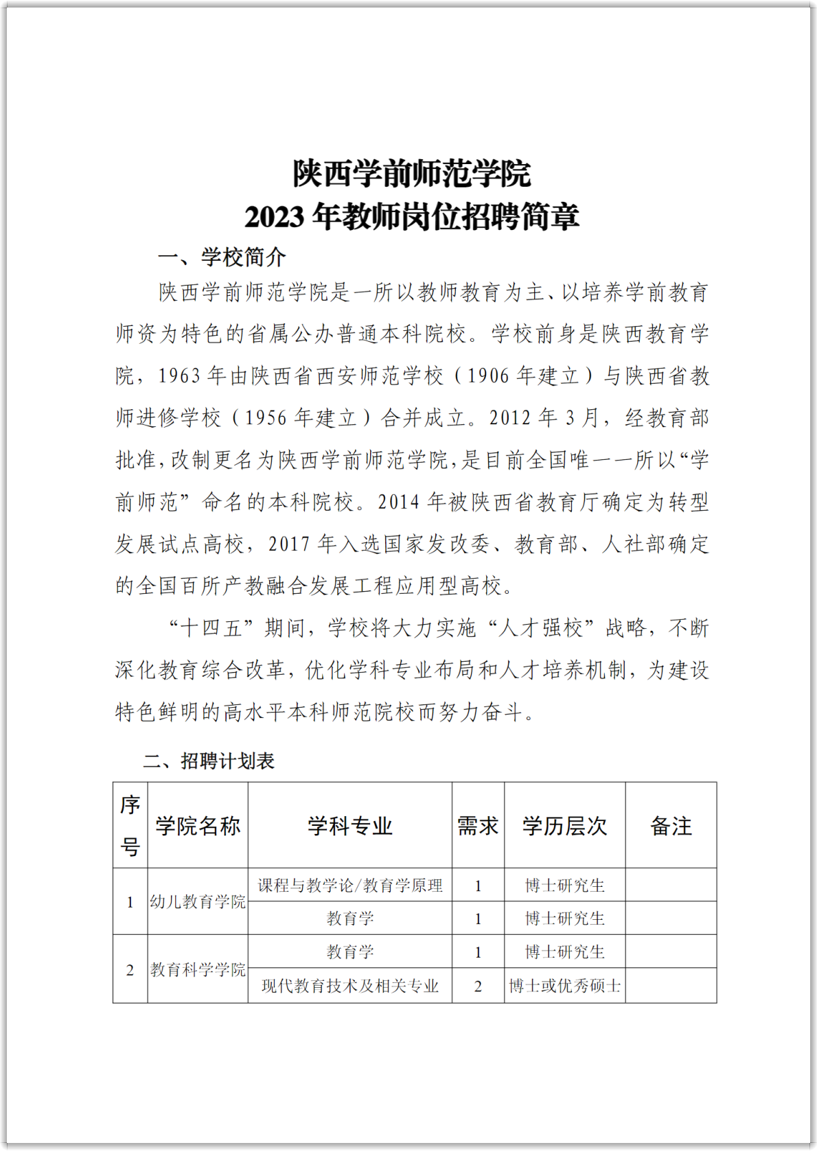 2023年陜西學前師范學院教師崗位招聘簡章
