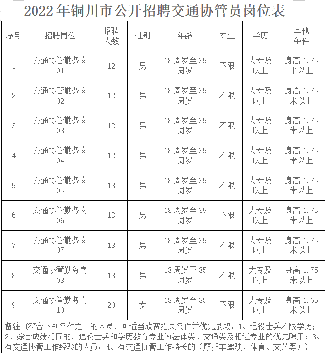 為全面加強道路交通安全管理,緩解交通管理工作壓力,經(jīng)有關(guān)部門批準(zhǔn),按照“公開、平等、競爭、擇優(yōu)”的原則,由陜西易通人力資源股份有限公司(易通人力)現(xiàn)面向社會公開招聘市級行政部門交通協(xié)管員120名,現(xiàn)將有關(guān)事項公告如下: