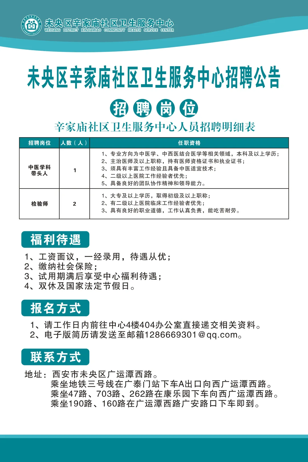 2025年西安市未央?yún)^(qū)辛家廟社區(qū)衛(wèi)生服務(wù)中心招聘公告