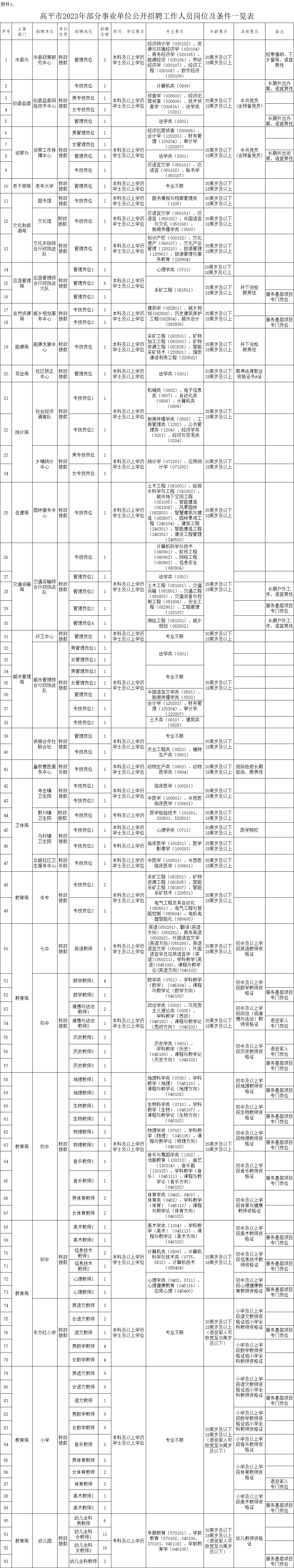 1.《高平市2023年部分事業(yè)單位公開招聘工作人員崗位及條件一覽表》