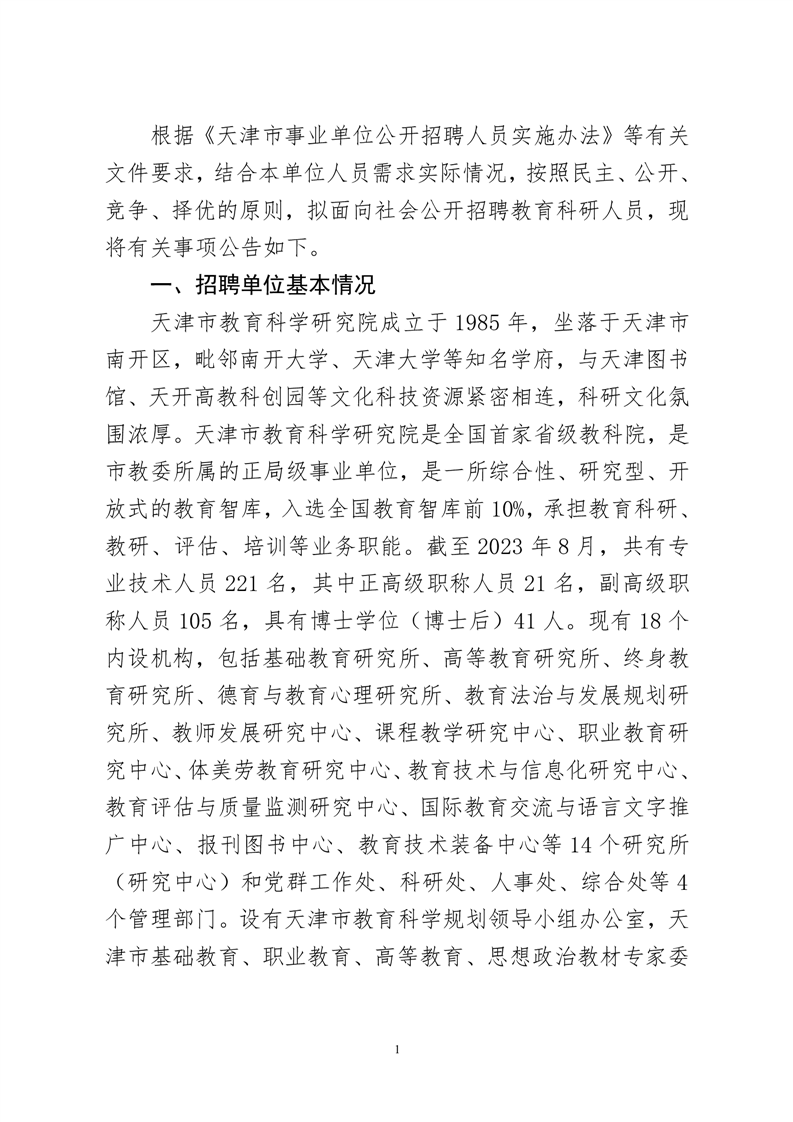 2024年天津市教育科學(xué)研究院公開招聘博士公告