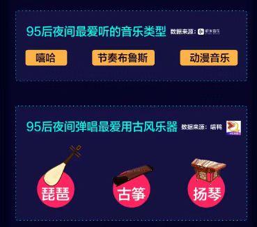 除此之外,音樂、閱讀也是95后夜貓子的心頭好。據(jù)蝦米數(shù)據(jù)顯示,嘻哈、節(jié)奏布魯斯和動漫是95后更為偏愛的音樂類型;來自廣東、浙江、江蘇、四川、山東的95后最愛深夜聽歌。年輕人不僅愛聽音樂,還找到了“玩”音樂的樂趣。在國內(nèi)首款彈唱APP唱鴨上,年輕人在K歌時更熱衷于創(chuàng)造屬于自己的音樂,95后最喜歡用古風(fēng)類樂器伴奏,尤其是琵琶、古箏、揚琴等傳統(tǒng)樂器受到年輕人追捧。