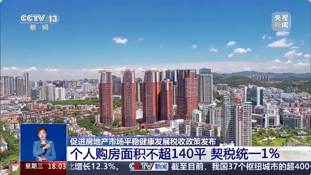 官方:購(gòu)買家庭唯一及第二套住房不超140平方米按1%繳納契稅