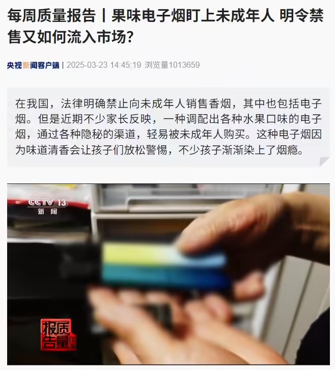 央視關注果味電子煙盯上未成年人,銷售“暗號”曝光