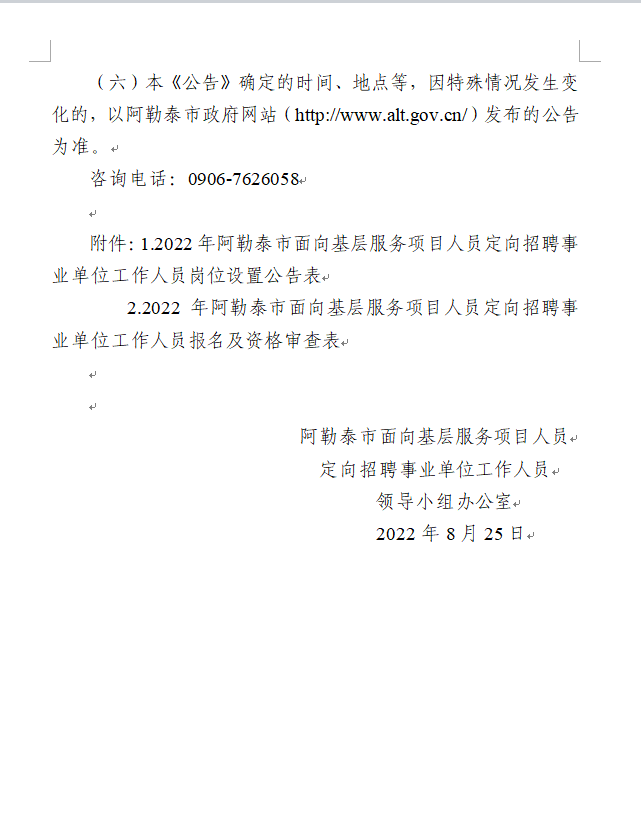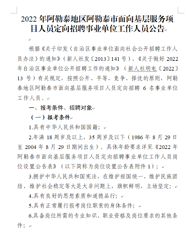 2022年阿勒泰地區(qū)阿勒泰市面向基層服務(wù)項目人員定向招聘事業(yè)單位工作人員公告