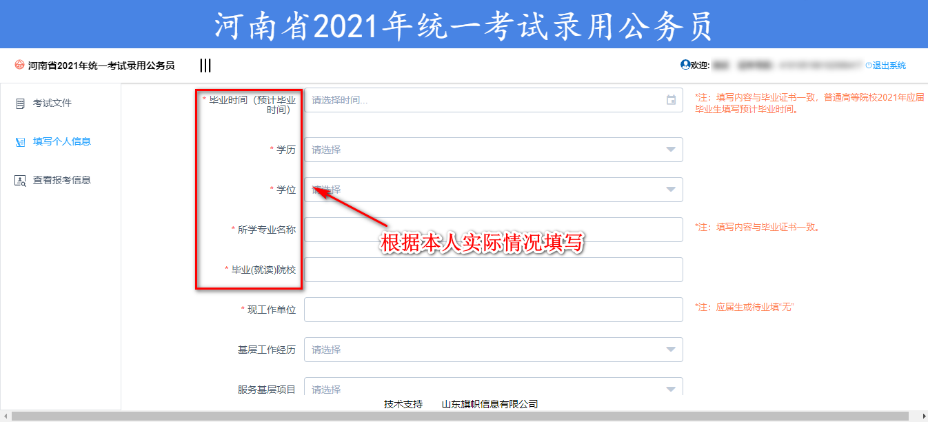根據(jù)本人實際情況填寫學歷信息,學歷、學位、所學專業(yè)名稱、畢業(yè)時間(預期畢業(yè)時間)、畢業(yè)(就讀)院校須與畢業(yè)證一致。