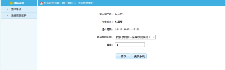 在此頁面可以完成對考生個人信息的修改。