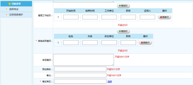 報考人員登錄后,請按照提示信息如實填寫考生的基本信息,請盡量將您的個人信息填寫的詳細,準確,以便您順利通過資格審查。(注意:對于通過筆試的考生,面試和資格復審將以您填報的信息作為依據(jù))