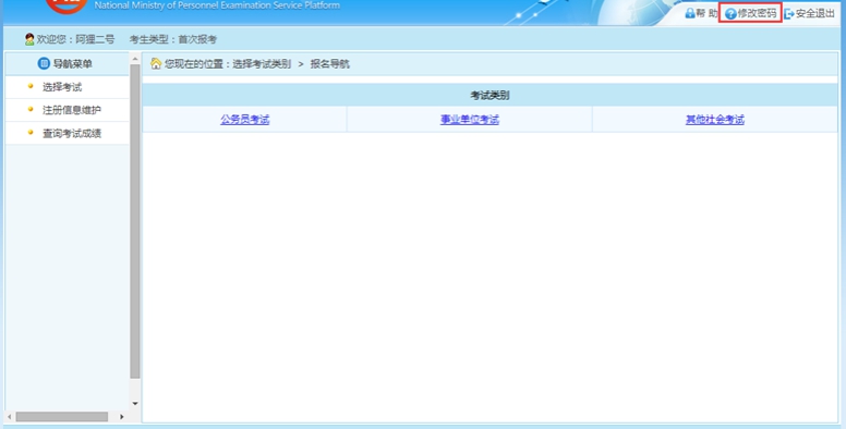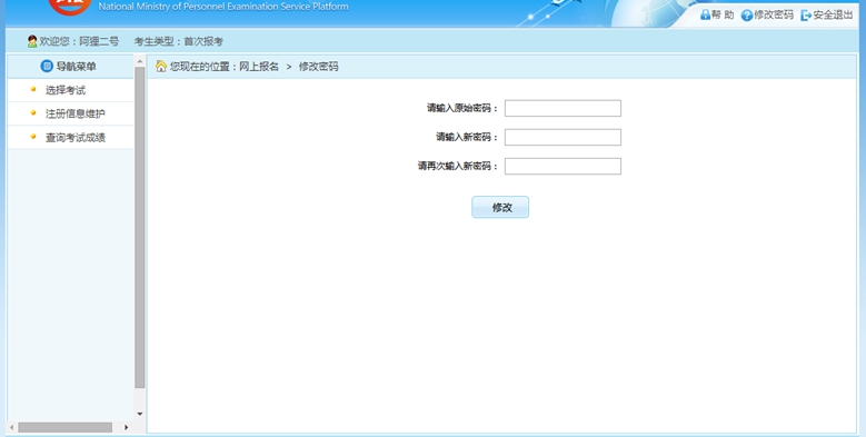 在該界面可以對考生的登錄密碼進行修改。