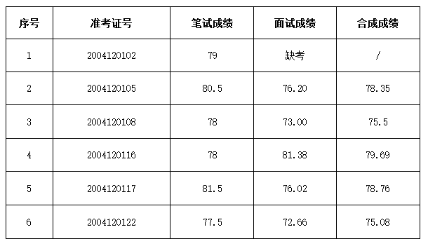 根據(jù)《含山縣應(yīng)急管理局公開招聘政府購買服務(wù)工作人員公告》要求,現(xiàn)將本次面試成績與筆試成績按照5:5的比例進(jìn)行合成,合成成績公示如下,公示期限5天, 自2020年4月20日至2020年4月24日。如有異議,請(qǐng)來電反映。