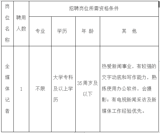 通過(guò)第三方勞務(wù)派遣方式招聘全媒體記者1名。