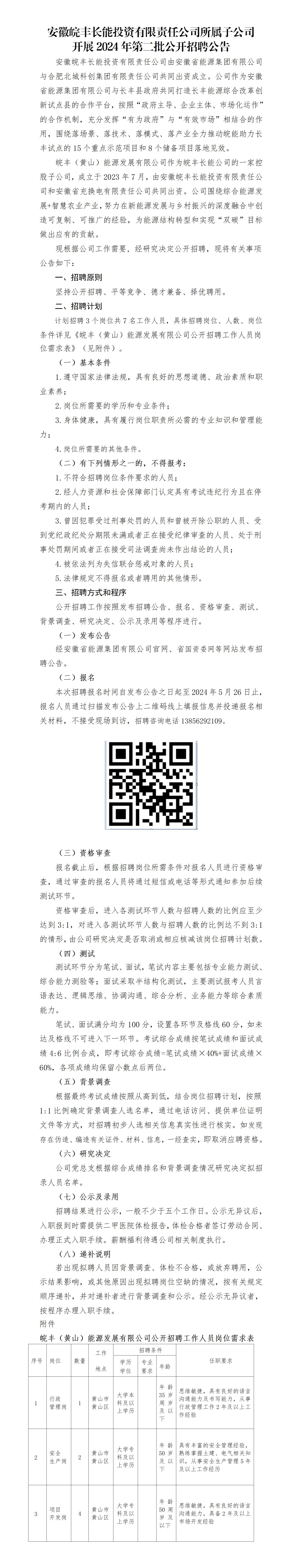 2024年安徽皖豐長能投資有限責(zé)任公司所屬子公司開展第二批公開招聘公告