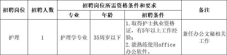 因工作需要,休寧縣萬(wàn)安鎮(zhèn)衛(wèi)生院經(jīng)研究決定通過(guò)黃山市仁和人力資源服務(wù)有限公司面向社會(huì)公開(kāi)招聘護(hù)理人員1名,現(xiàn)將有關(guān)事項(xiàng)公告如下:
