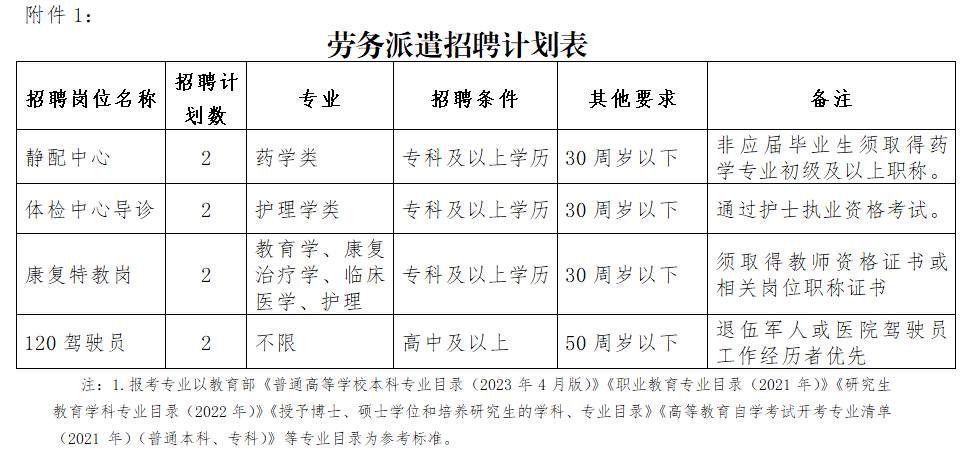 具體招聘崗位及人數(shù)詳見附件1:勞務派遣招聘計劃表