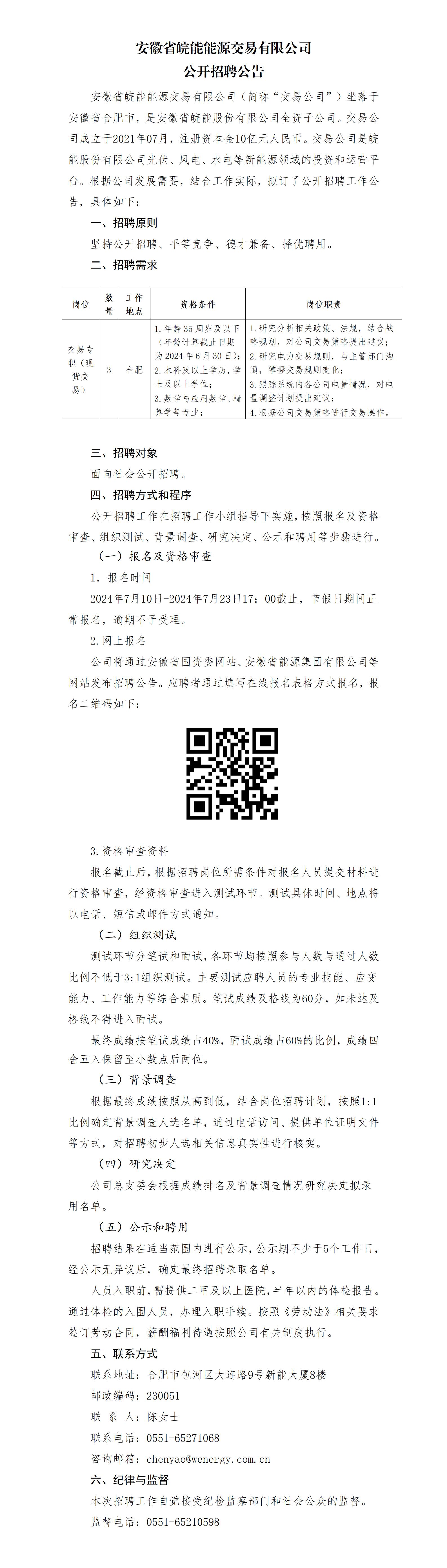2024年安徽省皖能能源交易有限公司公開招聘公告