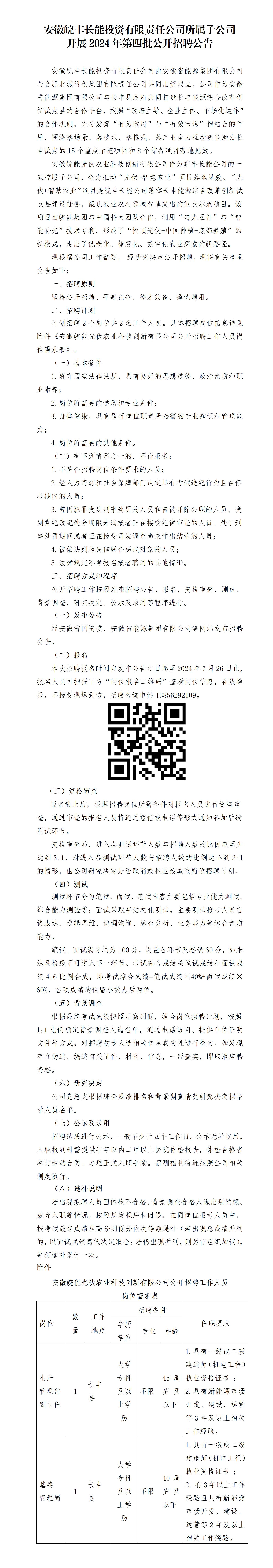 2024年安徽皖豐長能投資有限責(zé)任公司所屬子公司開展第四批公開招聘公告