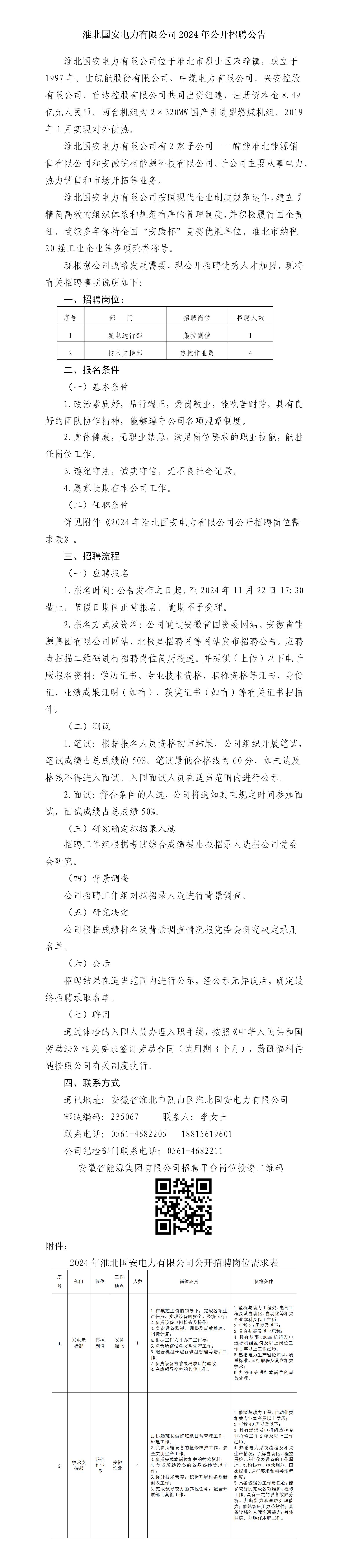 2024年淮北國安電力有限公司公開招聘公告