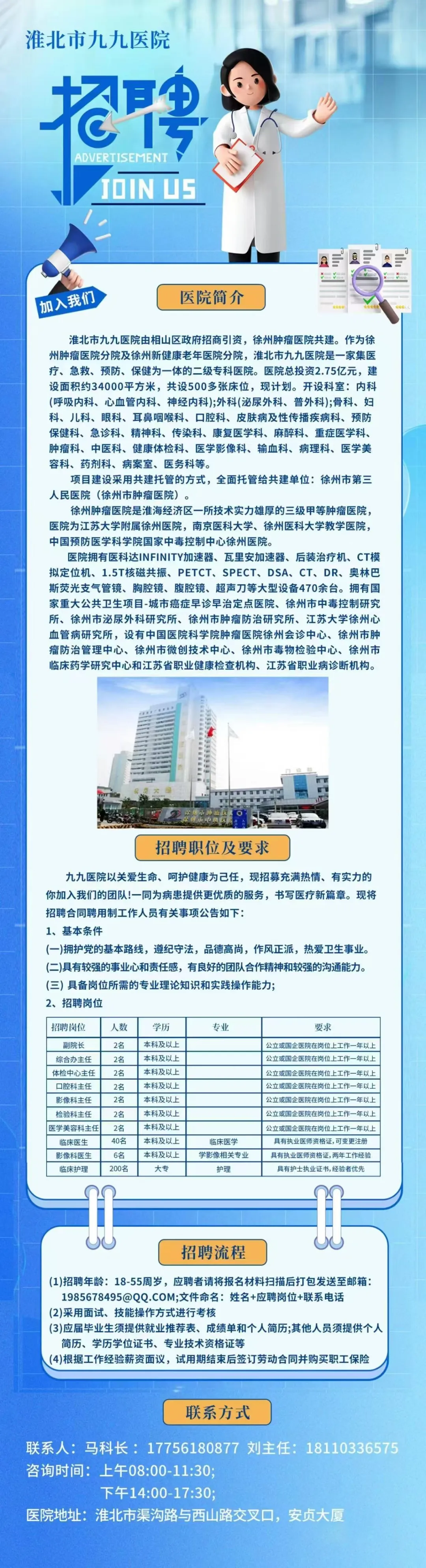 淮北市九九醫(yī)院由相山區(qū)政府招商引資,徐州腫瘤醫(yī)院共建。作為徐州腫瘤醫(yī)院分院及徐州新健康老年醫(yī)院分院,淮北市九九醫(yī)院是一家集醫(yī)療、急救、預防、保健為一體的二級??漆t(yī)院。醫(yī)院總投資2.75億元,建設面積約34000平方米,共設500多張床位,現(xiàn)計劃。開設科室:內科(呼吸內科、心血管內科、神經內科);外科(泌尿外科、普外科);骨科、婦科、兒科、眼科、耳鼻咽喉科、口腔科、皮膚病及性傳播疾病科、預防保健科、急診科、精神科、傳染科、康復醫(yī)學科、麻醉科、重癥醫(yī)學科、腫瘤科、中醫(yī)科、健康體檢科、醫(yī)學影像科、輸血科、病理科、醫(yī)學美容科、藥劑科、病案室、醫(yī)務科等。