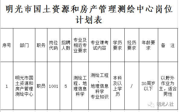 附件:1.明光市國土資源和房產(chǎn)管理測繪中心公開招聘工作人員崗位計劃表