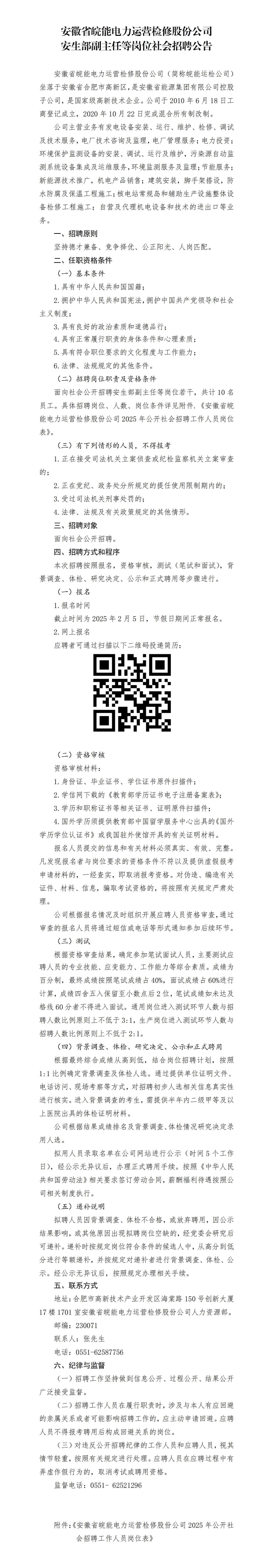 2025年安徽省皖能電力運(yùn)營(yíng)檢修股份公司安生部副主任等崗位社會(huì)招聘公告